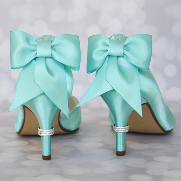 Aqua Peep Toe Wedding Shoes with Matching Bow and Silver Ring