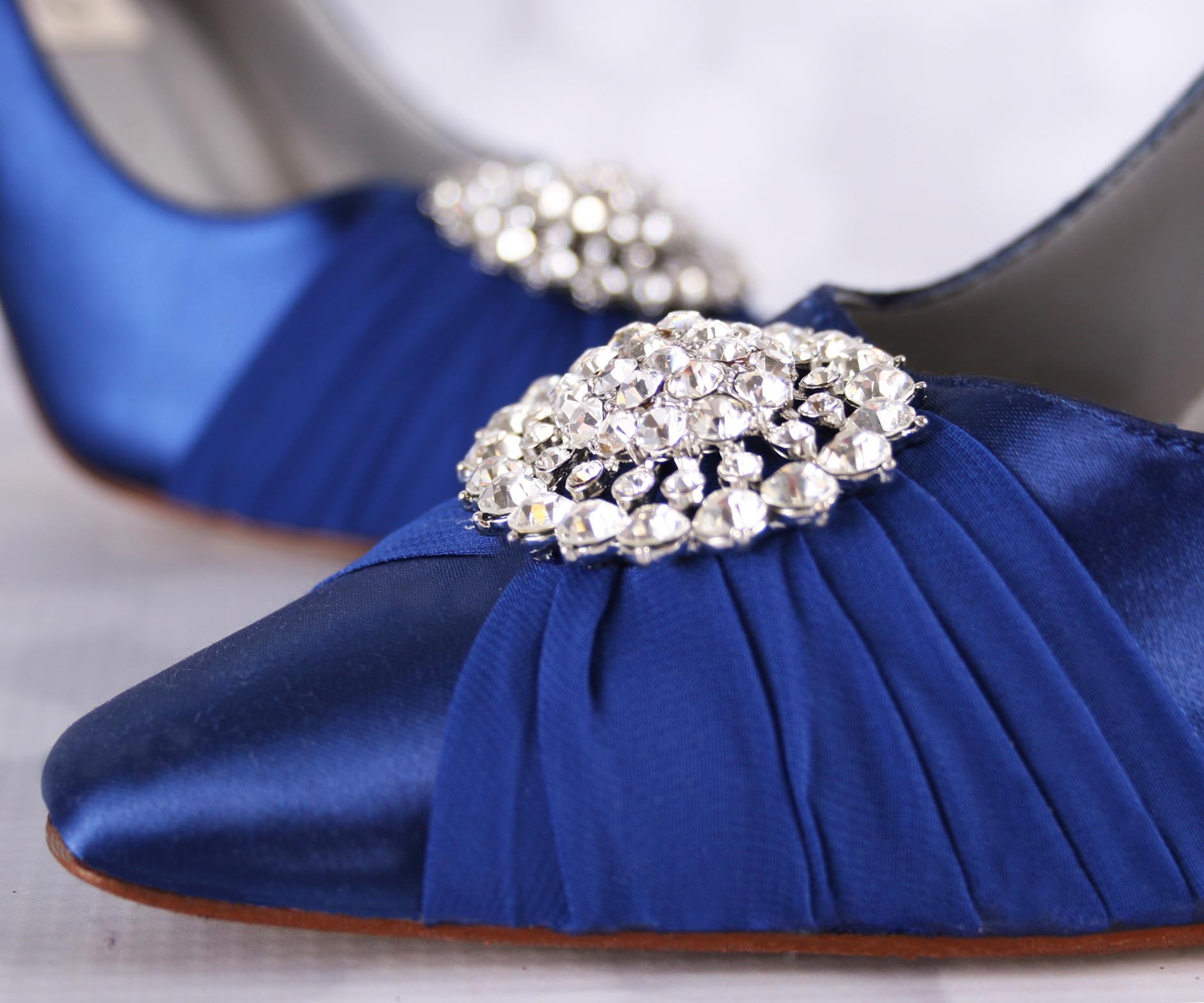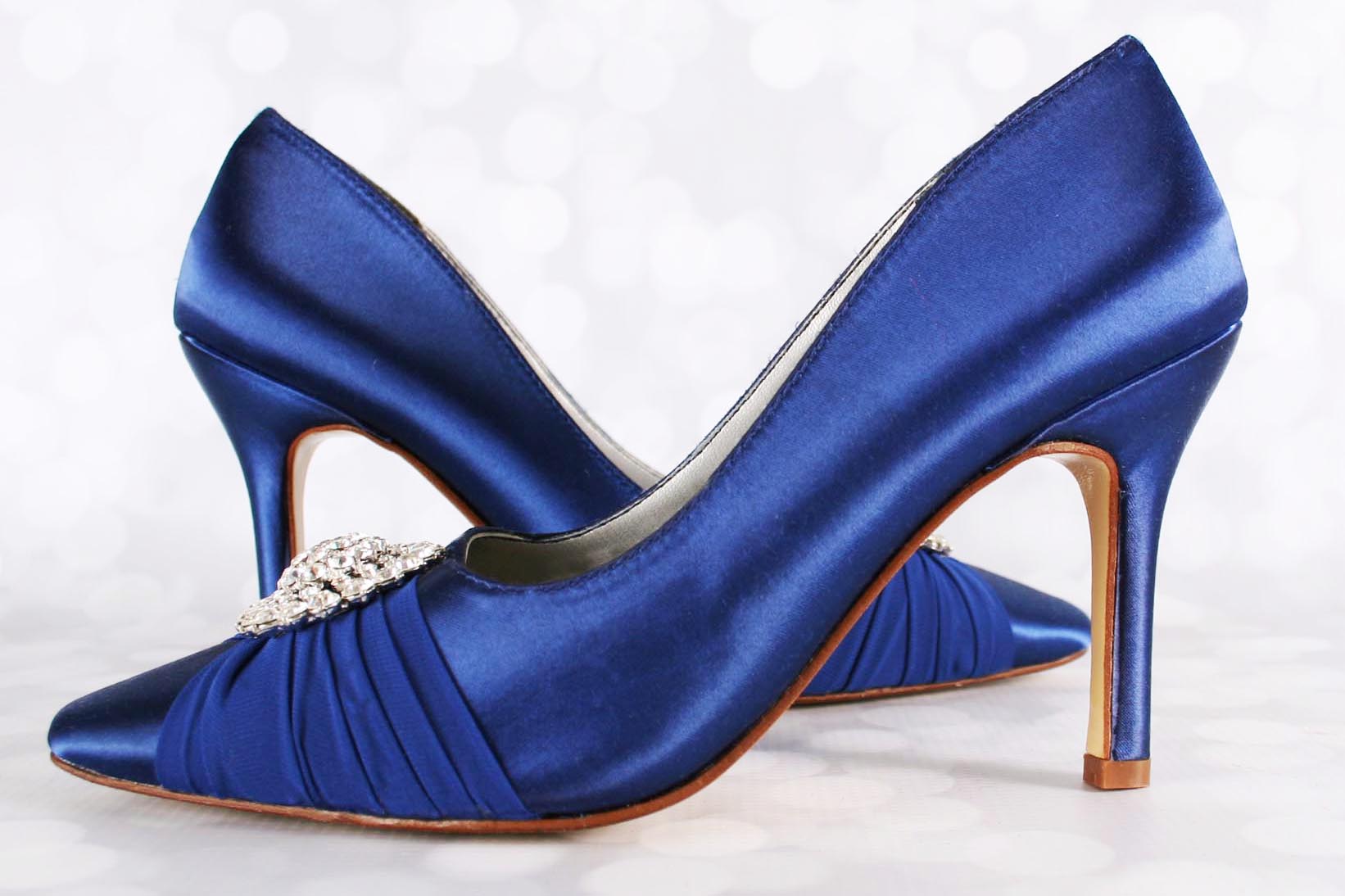 Royal Blue Closed Toe Wedding Shoes with Chiffon Sash to Brooch