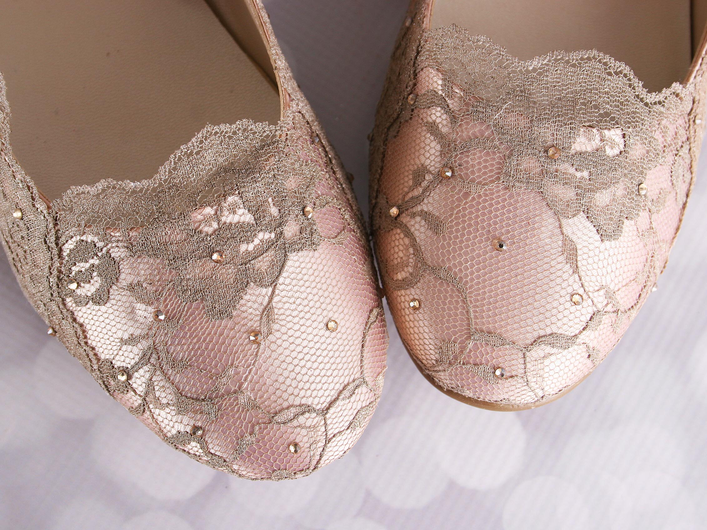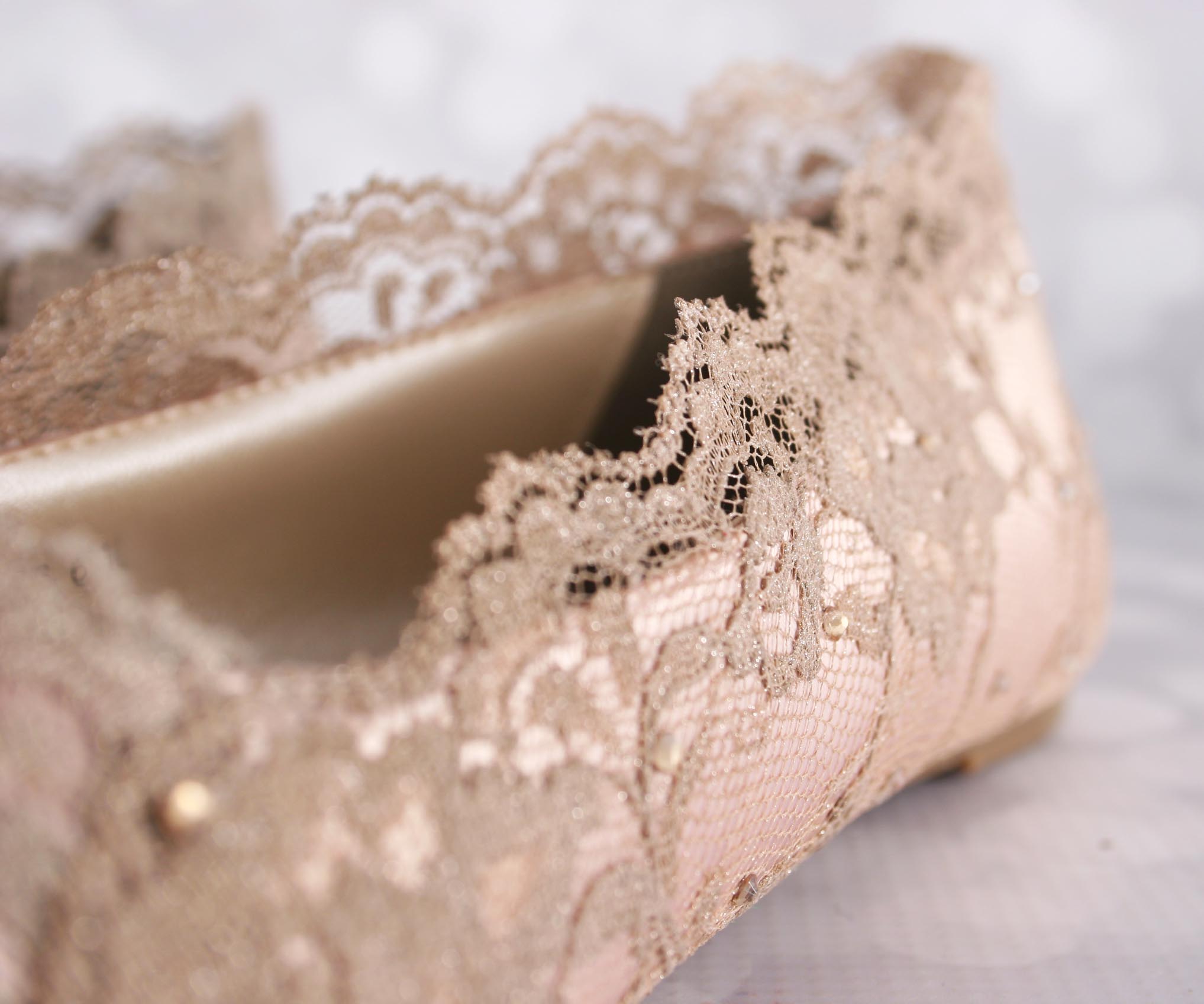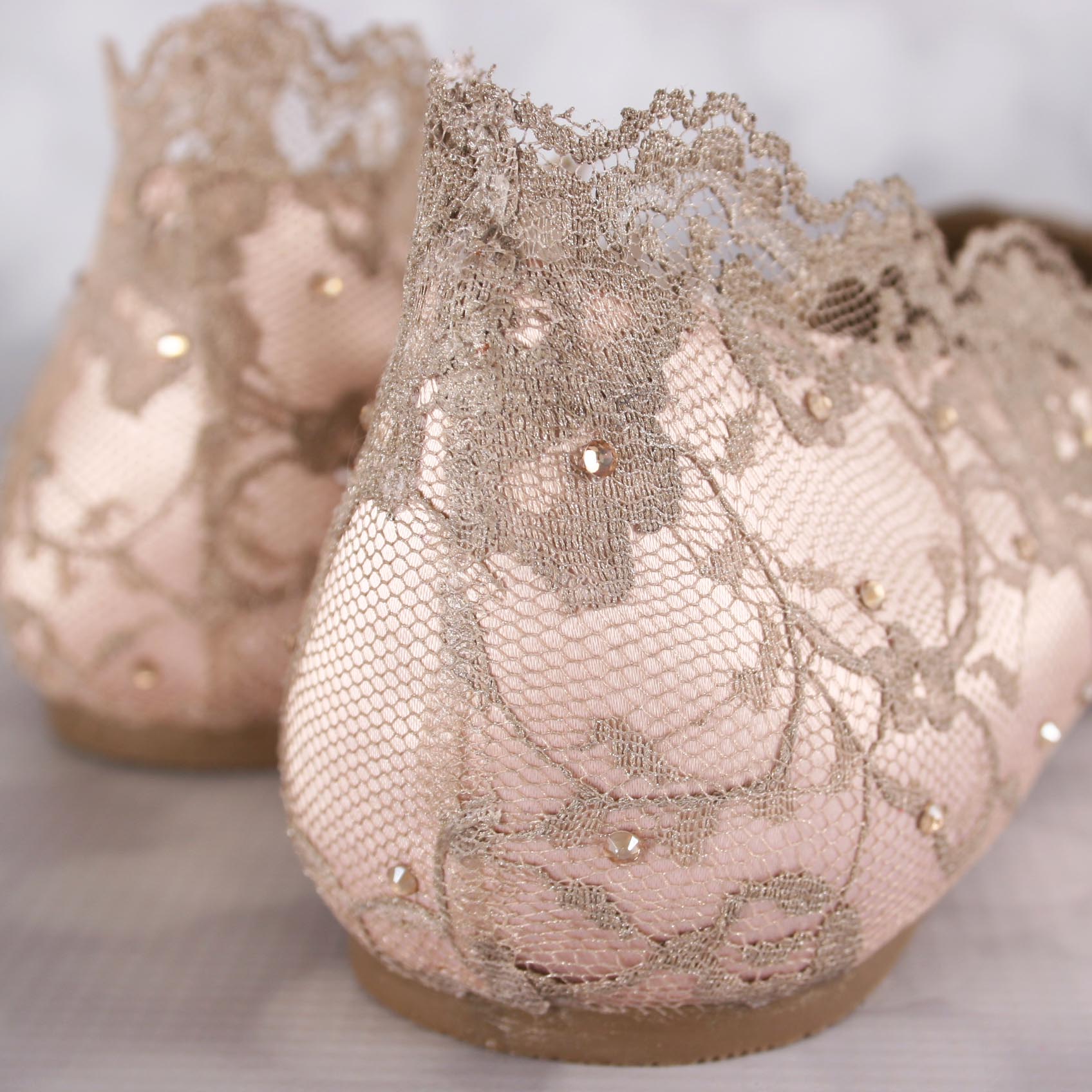 Blush Wedding Shoes: Ballet Flats Bridal Shoes with Scalloped Champagne Lace Overlay and Blush Crystals (71)