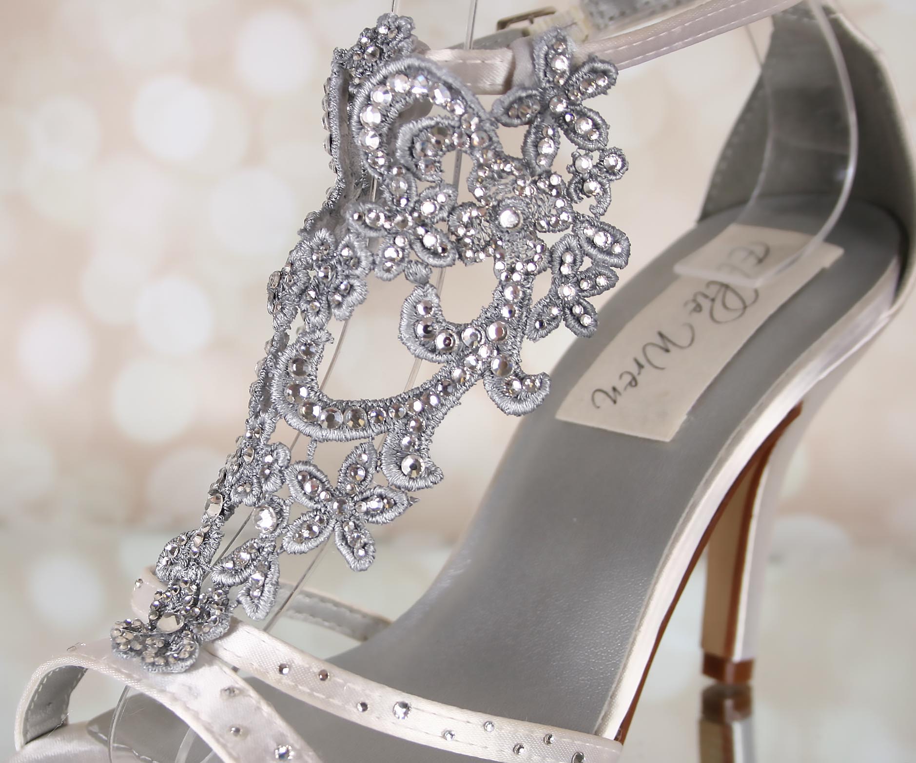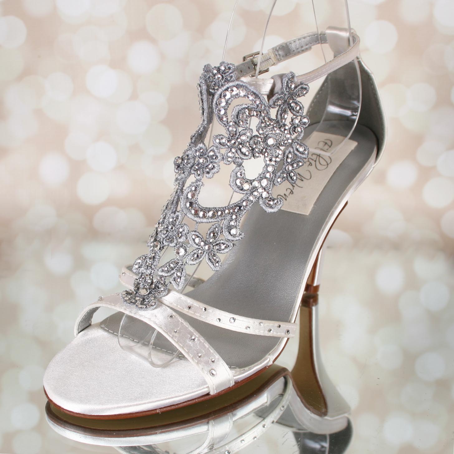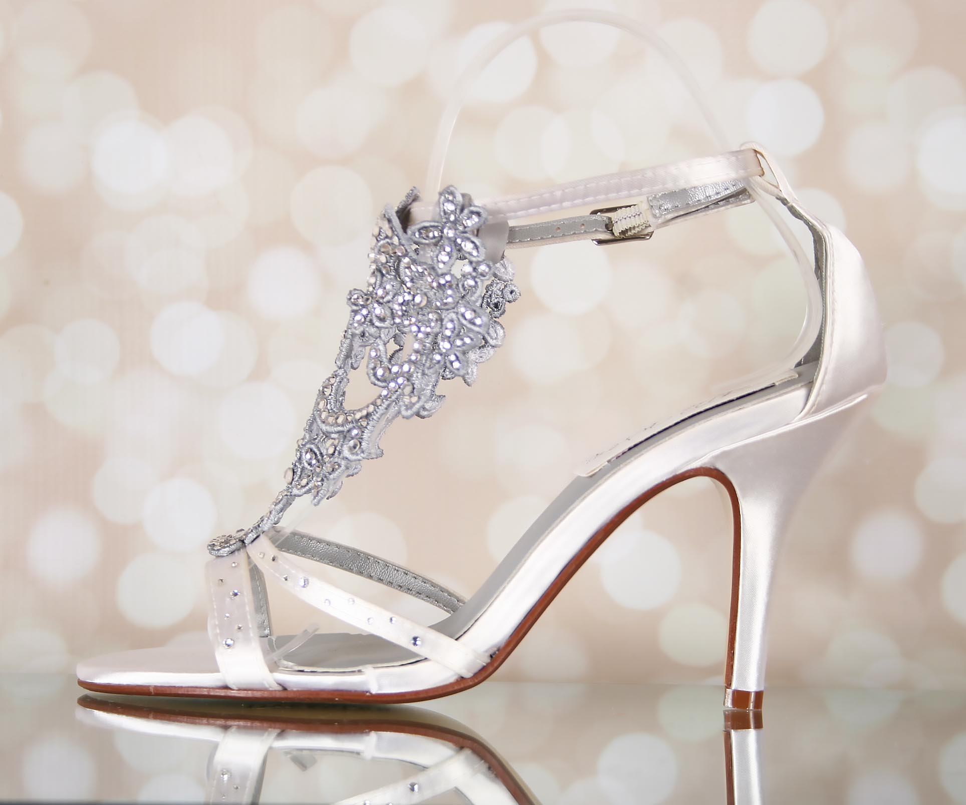Ivory Wedding Sandals: Ivory Bridal Heels with Handmade Silver Crystal T-Strap